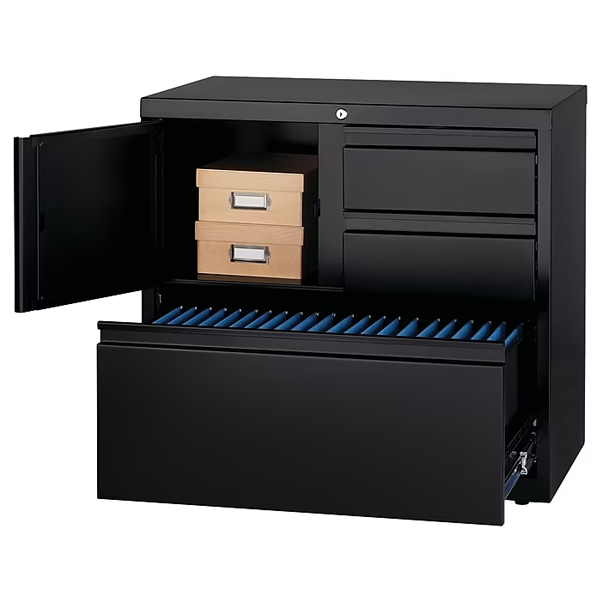 Descubra la máxima organización con este archivador lateral de calidad comercial: diseñado para elevar su oficina y al mismo tiempo brindar funcionalidad. La seguridad es primordial con un sistema de bloqueo para evitar que se vuelque y un candado extraíble para un almacenamiento seguro. Certificado Greenguard Gold para la calidad del aire interior y respaldado por una garantía limitada de por vida.