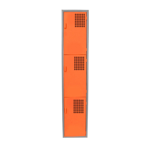 El cuerpo y las puertas son ensambladas mediante soldadura por resistencia, las puertas se abren y cierran por medio de 2 bisagras tipo libro, cada puerta cuenta con una rejilla punteada de 36 orificios de ventilación, jaladera y portacandado.